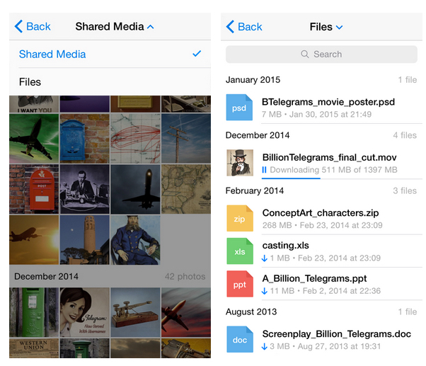 Con Whatsapp il limite di invio dei file è di soli 16 mb; poche immagini basteranno ad esaurire le possibilità di condivisione. Su Telegram le cose vanno molto meglio ed è possibile inviare file fino a 1.5 GB.
