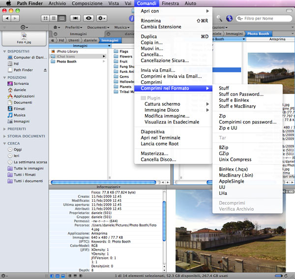 Tra le altre funzioni più interessanti di Path Finder ricordiamo l’accesso al volo alla riga di comando del terminale, per gli utenti più avanzati, la possibilità di filtrare le cartelle più numerose per disporre i file in ordine di dimensione, una serie impressionante di funzioni attivabili semplicemente con un segno di spunta. Per esempio oltre all’elenco per nome e dimensioni è possibile ri-ordinare i file a seconda dell’accesso, dei commenti, data di creazione, estensione, etichetta, Gruppo, percorso, proprietario, tipo e versione. Path Finder integra tutti i principali sistemi di compressione e decompressione dei file, offre funzioni avanzate per la ricerca di file e documenti e molto altro ancora.