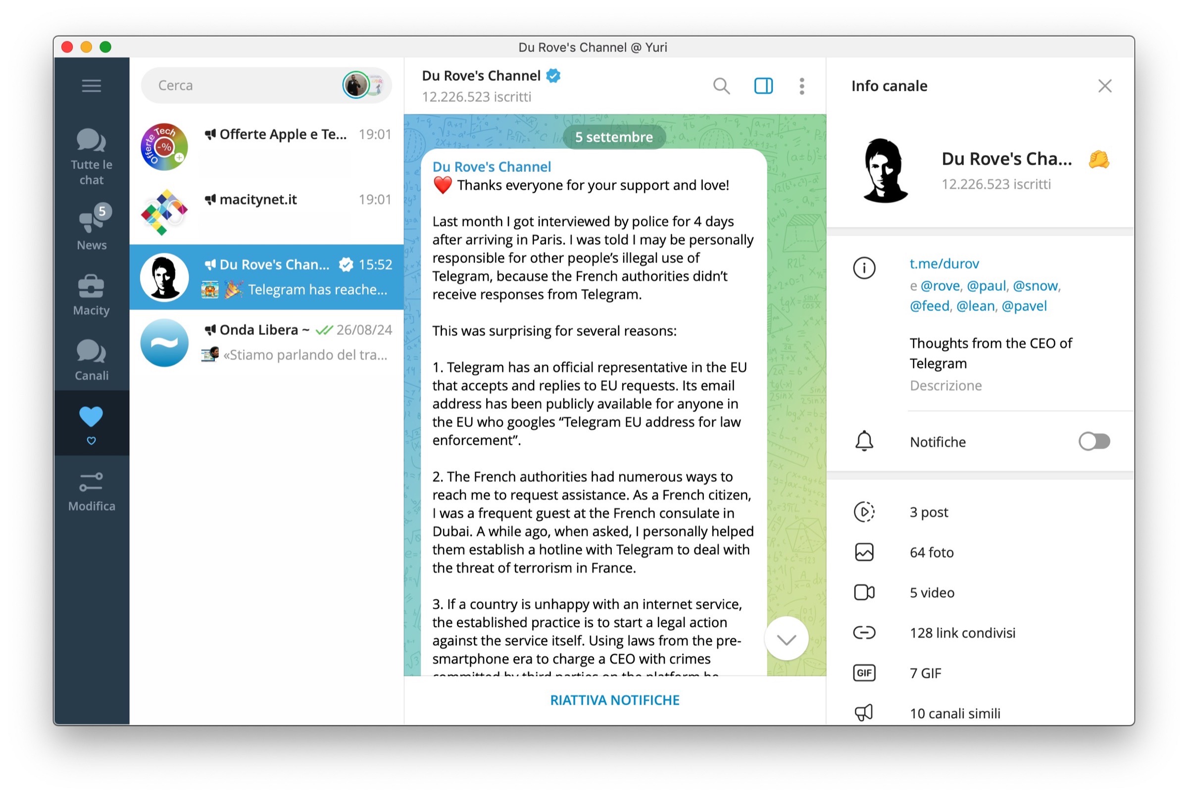 Tutte le notizie su Telegram da qui, invece per gli articoli che parlano di social network di parte dalla sezione dedicata di macitynet.