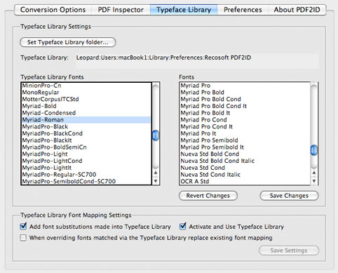Il sistema s’integra con InDesign eliminando la necessità di ricorrere a tool per il recovering dei PDF. Tutti i font e gli eventuali sostituti sono memorizzati in una libreria denominata “Typeface library” rendendo facile il rimpiazzo di eventuali caratteri. Le impostazioni di conversione possono essere salvate e riutilizzate nelle successive conversioni (preset); anche le annotazioni nei documenti possono essere recuperate e visualizzate in InDesign.
