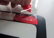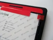 Nella confezione troviamo una larga spatola in plastica nera, un pannetto per la pulizia e un rettangolo adesivo molto importante la cui funzione sarà spiegata in seguito. La pellicola vera e propria è tenuta un posizione da un elemento adesivo rosso sulla parte superiore della “culla”.