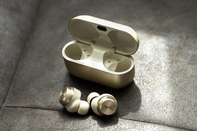 EAH-AZ100, il modello di punta degli auricolari True Wireless di Technics, dispone di un sistema Magnetic Fluid Driver all’avanguardia. Questo promette “suoni limpidi, di alta precisione, con basse vibrazioni e distorsione ridotta”. Incorpora anche la tecnologia Adaptive Noise Cancelling per eliminare il rumore in base all’ambiente circostante, nonché la nuova funzione Voice Focus AI, che utilizza l’intelligenza artificiale prometrtendo “chiamate chiare e di alta qualità”.