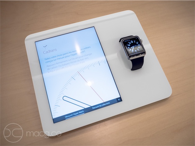 Il francese iGen fa notare che per l’Apple Watch visibile in alcuni store è stato predisposto un piedistallo o meglio un espositore / base ad hoc che interagisce con l’utente mostrando contenuti multimediali sul display. Il supporto con integrato un display “intelligente” è in realtà un iPad mini, come evidenziano le certificazioni riportate nella parte posteriore. Tra le diciture in questione c’è infatti anche il codice prodotto (“A1622”), un dispositivo evidentemente personalizzato dalla Mela e segno della maniacale attenzione per particolari apparentemente meno importanti.