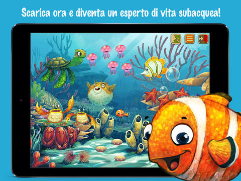 La nuova app per iPhone e iPad di Fox and Sheep, affermato sviluppatore di applicazioni per la prima infanzia, attraverso illustrazioni simpatiche e dai colori sgargianti offre ai bambini la possibilità di conoscere più di 30 animali dell’oceano divisi in tre gruppi differenti. Facendo tap sul pesce che incuriosisce di più i bambini vedranno animazioni e ascolteranno suoni interessanti.