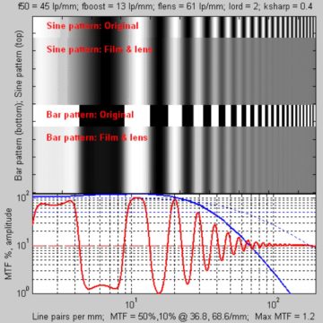 Attenzione, però, perché il fatto che il grafico MTF sia orientato agli obiettivi non cambia niente con il discorso del sensore digitale. Nel campo della fotografia analogica si utilizzavano determinate pellicole dai tempi di esposizione più lunghi (da qui il cavalletto, per evitare il mosso e il micromosso) composte da combinazioni di sostanze chimiche il cui potere di risolvenza già si conosceva. In questo modo, sapendo quanta definizione era possibile con la pellicola, la differenza in peggio era imputabile all’obiettivo (in meglio non era misurabile perché la pellicola non la registrava).