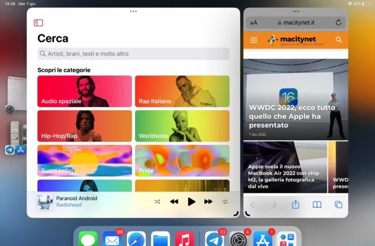 Tra le novità di iPadOS 16 – versione del futuro sistema operativo che nel momento in cui scriviamo è disponibile come beta solo per gli sviluppatori – c’è Stage Manager, funzione che rivoluziona il concetto di multitasking permettendo di lavorare con più finestre aperte in sovrapposizione e con il supporto completo di monitor esterni.
