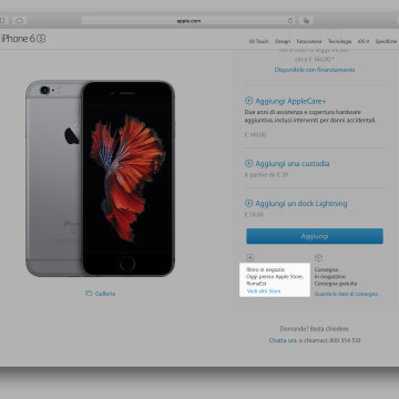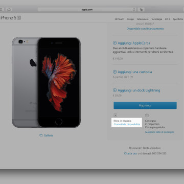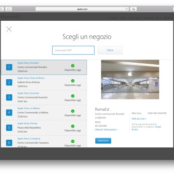 Grazie al servizio Personal Pickup in fase di acquisto è ora possibile scegliere il negozio più vicino dalla lista degli Apple Store disponibili (tramite ricerca via CAP) cliccando su “Controlla la disponibilità” nell’apposita finestra di configurazione prodotto prima dell’aggiunta nel carrello. Il sistema se usato da App Store su iPhone o iPad, mediante l’applicazione, è anche in grado di selezionare automaticamente il più vicino negozio Apple.