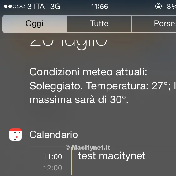 Il Notification Center è una delle caratteristiche più apprezzate dagli utenti iOS. Questa particolare schermata, che può essere richiamata semplicemente con uno slide verso il basso, mostra avvisi, notifiche, iMessage e chiamate perse. Attraverso il notification center è anche possibile richiamare la finestra Oggi, che raggruppa tutte le informazioni quotidiane relative al calendario, ai promemoria, al meteo o anche alla borsa e che è certamente una delle funzioni più utili.