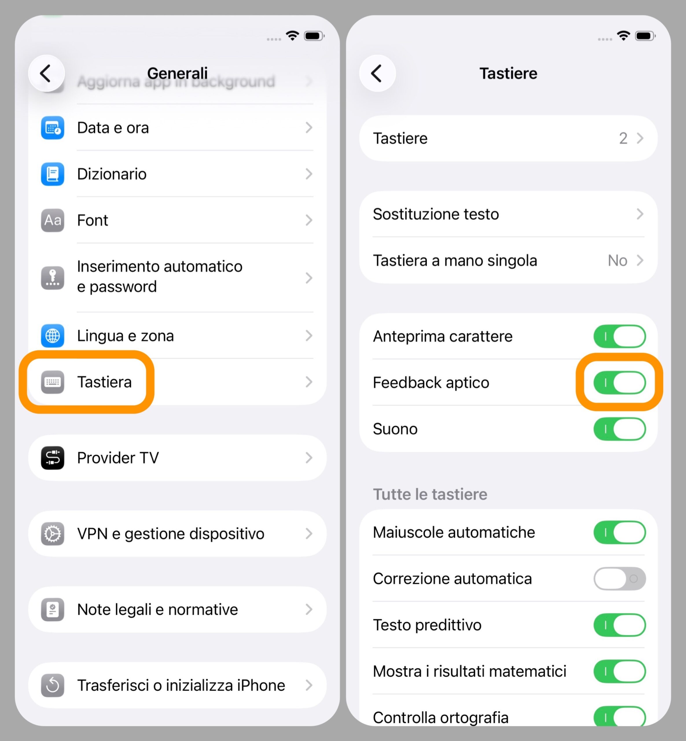 Se non lo avete attivo, è una buona idea attivare anche il feedback aptico che, con una leggera vibrazione, vi informa ogni qual volta avete toccato un pulsante. Anche questo, come per la funzione precedente, vi aiuterà a capire quando viene schiacciato un pulsante della tastiera, anche solo per errore.