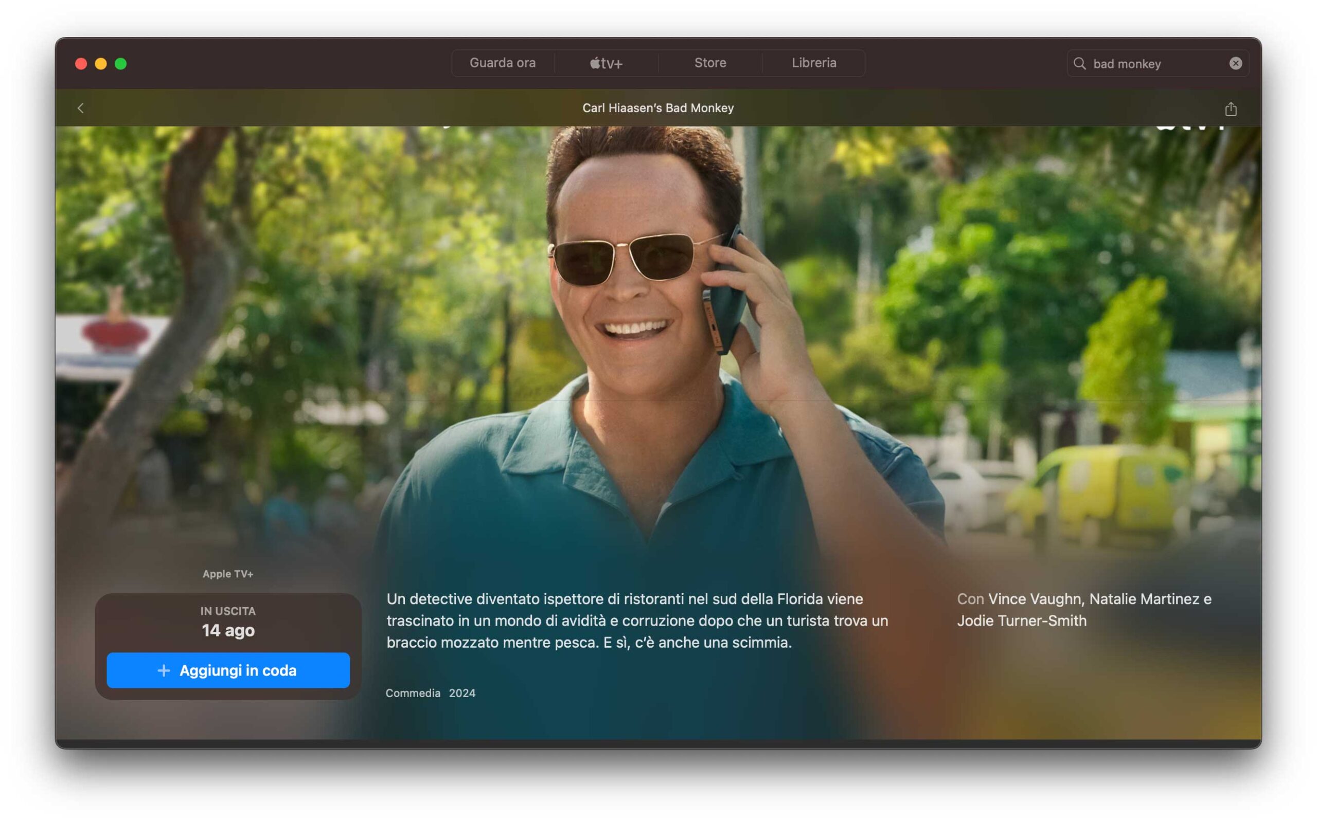 Home » Hi-Tech » Audio / Video / TV / Streaming » PETA contro la serie Bad Monkey su Apple TV Plus