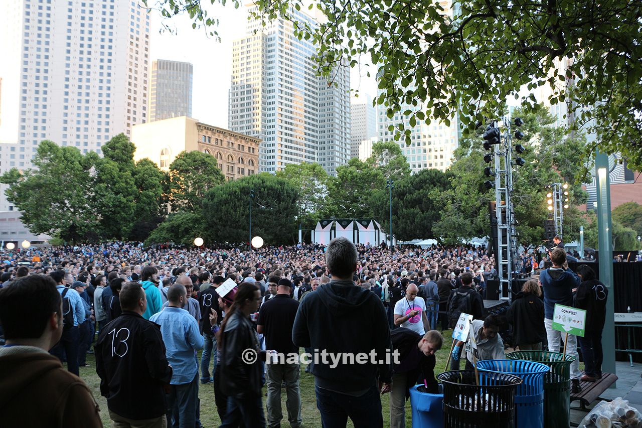 Migliaia di persone, quasi tutti i 5.000 sviluppatori e i mille ingegneri che in questi giorni si sono incontrati negli immensi spazi convention del Moscone Center e nei laboratori allestiti all’occasione si sono radunate per un momento di festa.