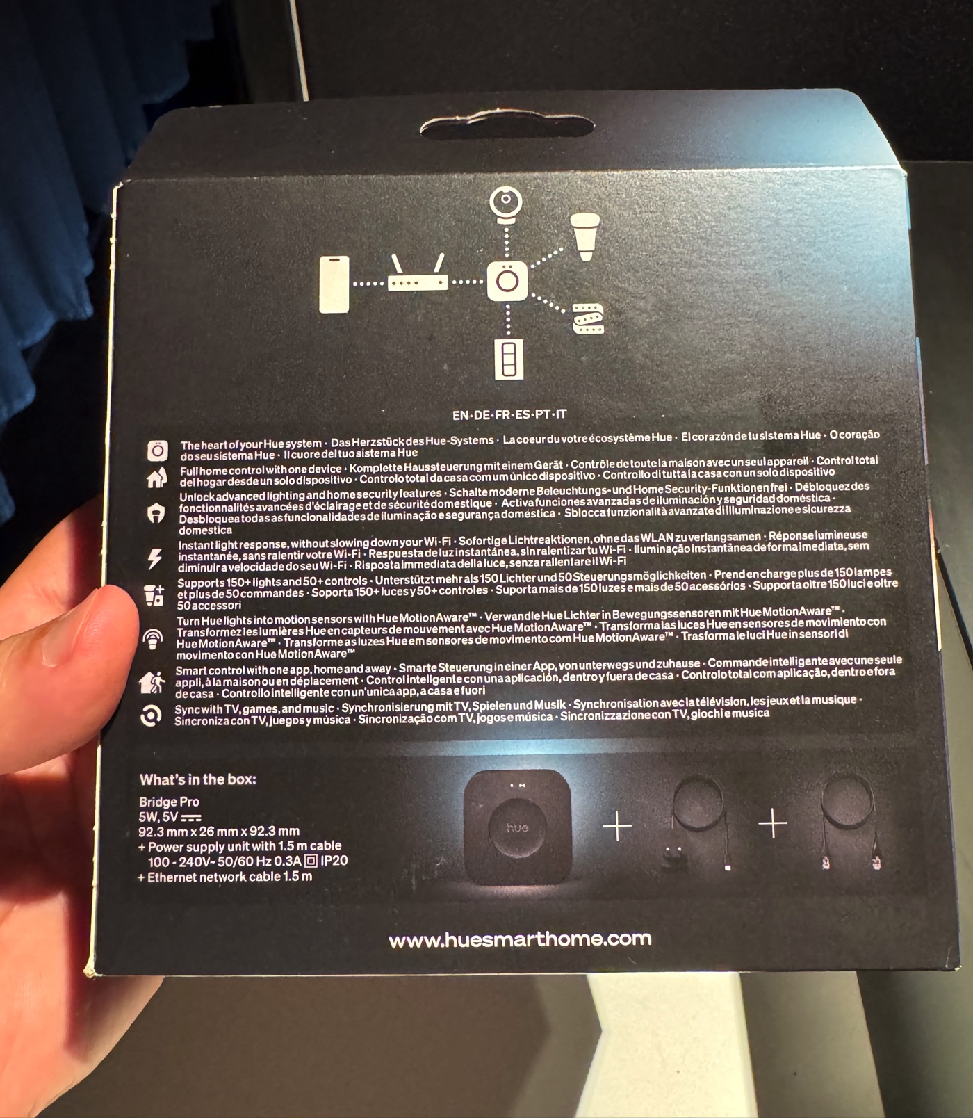 L’aggiornamento è semplice: gli utenti possono trasferire tutte le impostazioni dell’attuale Philips Hue Bridge con pochi clic. Il supporto per combinare più Bridge in un unico Bridge Pro arriverà prima della fine dell’anno.