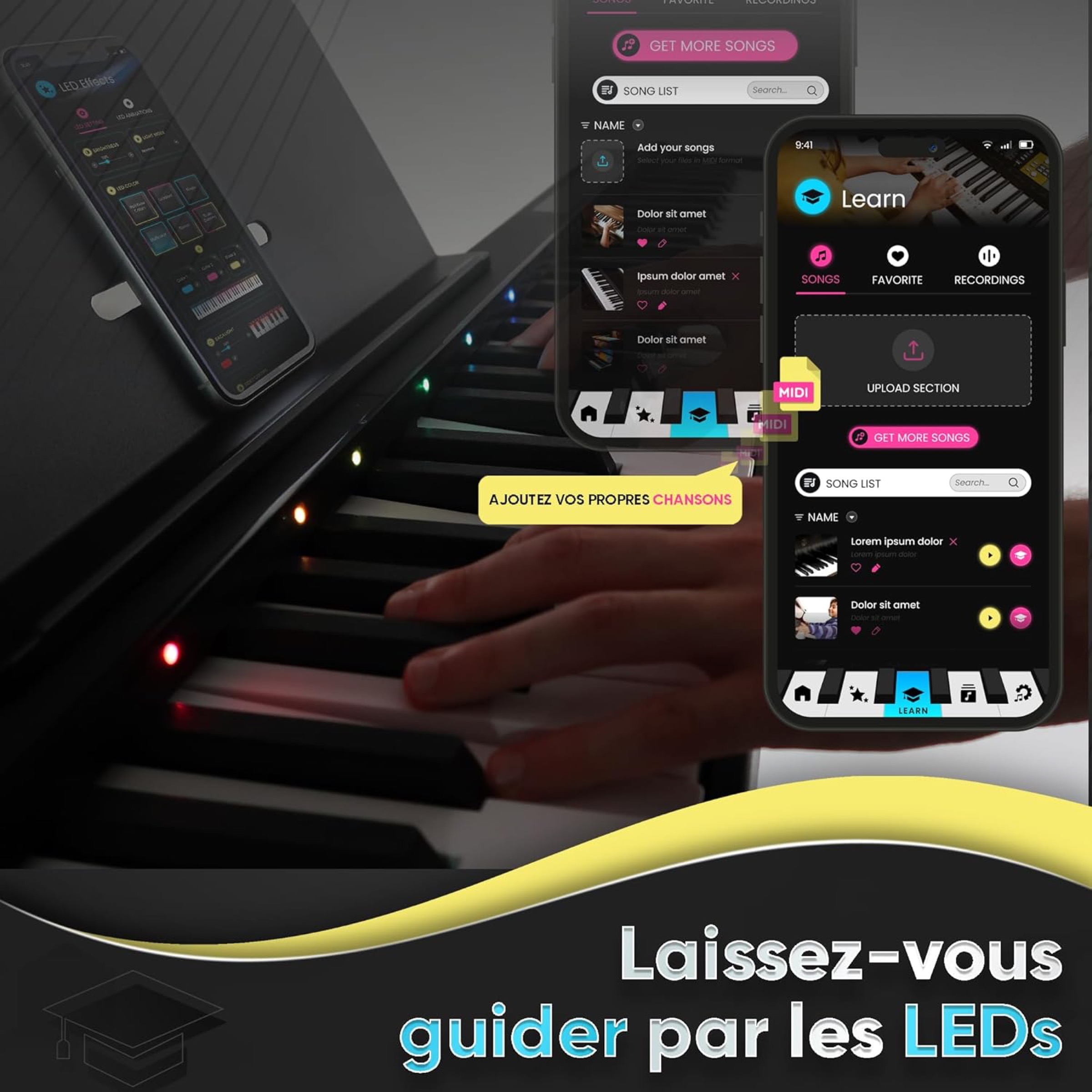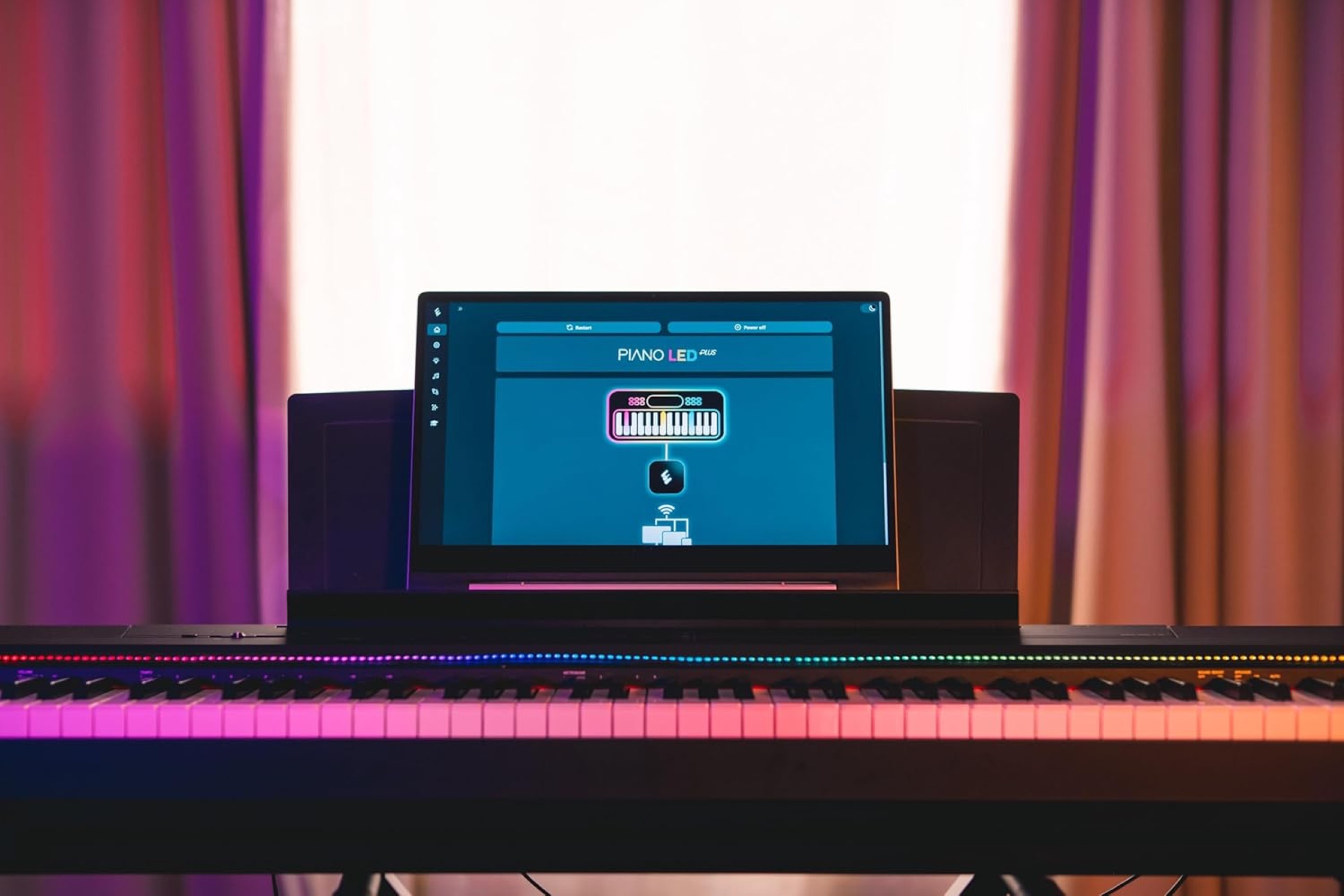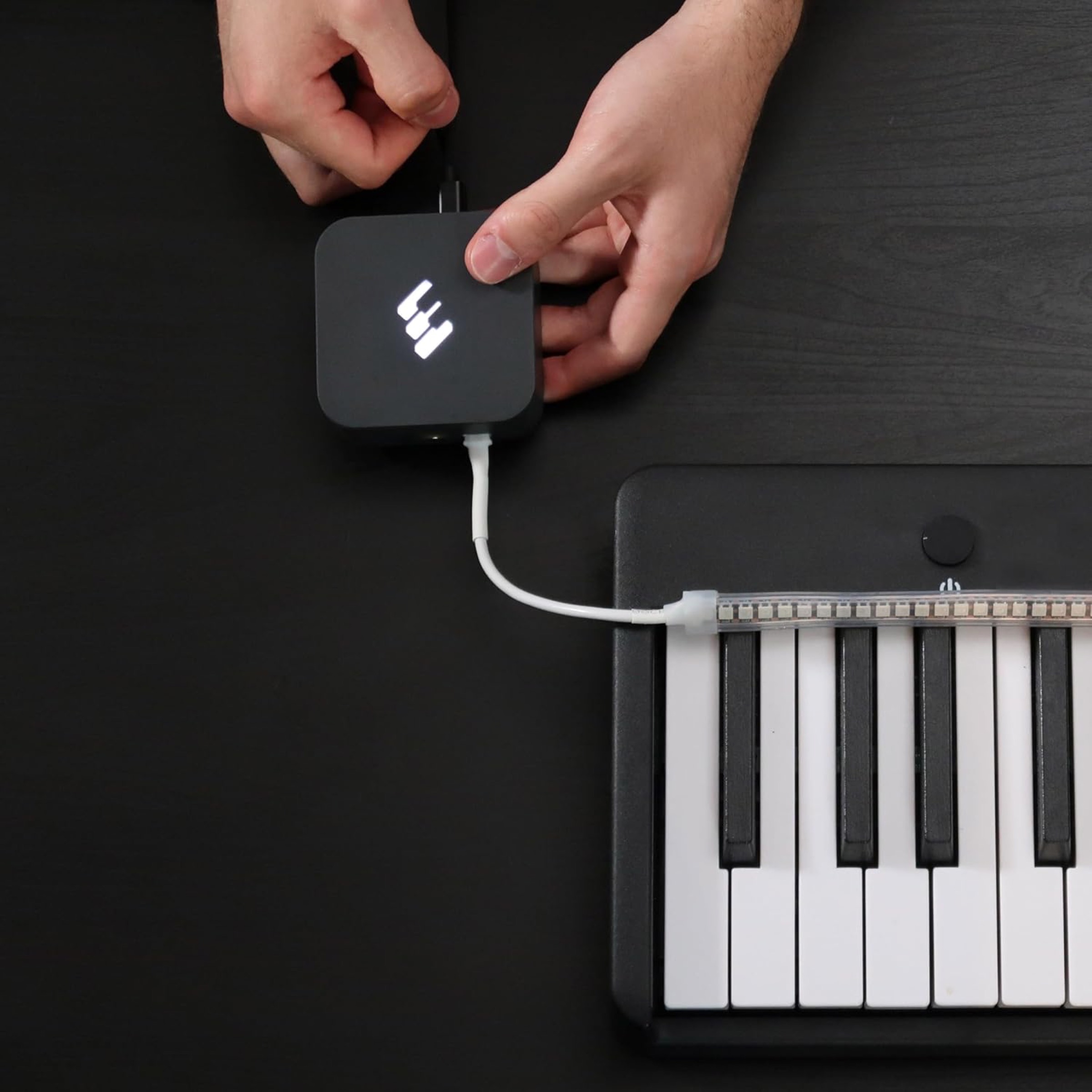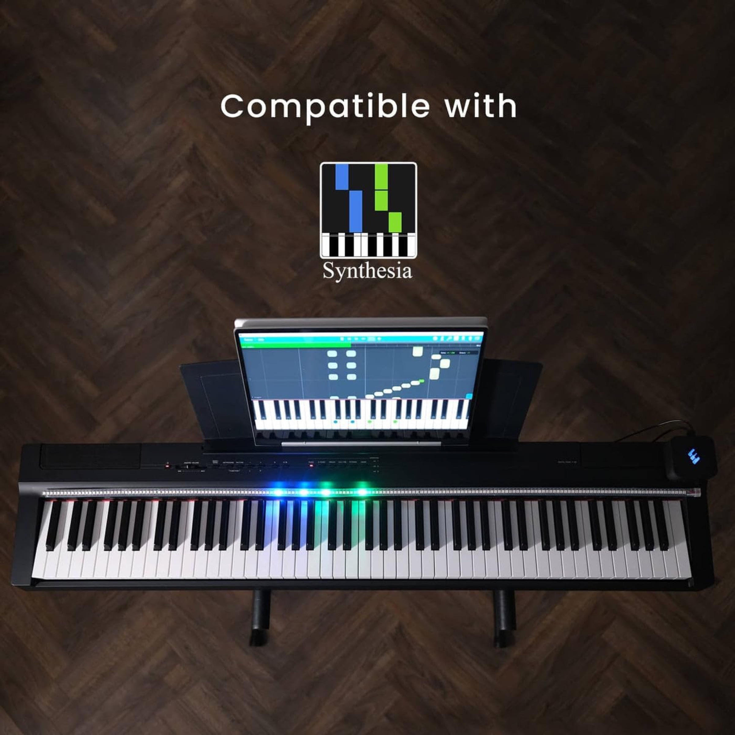 È compatibile con qualsiasi tastiera o pianoforte digitale dotati di porta USB-B oppure MIDI IN-OUT e, dopo aver installato la striscia LED sopra i tasti e dedicato qualche minuto per la configurazione iniziale, è subito pronto all’uso.