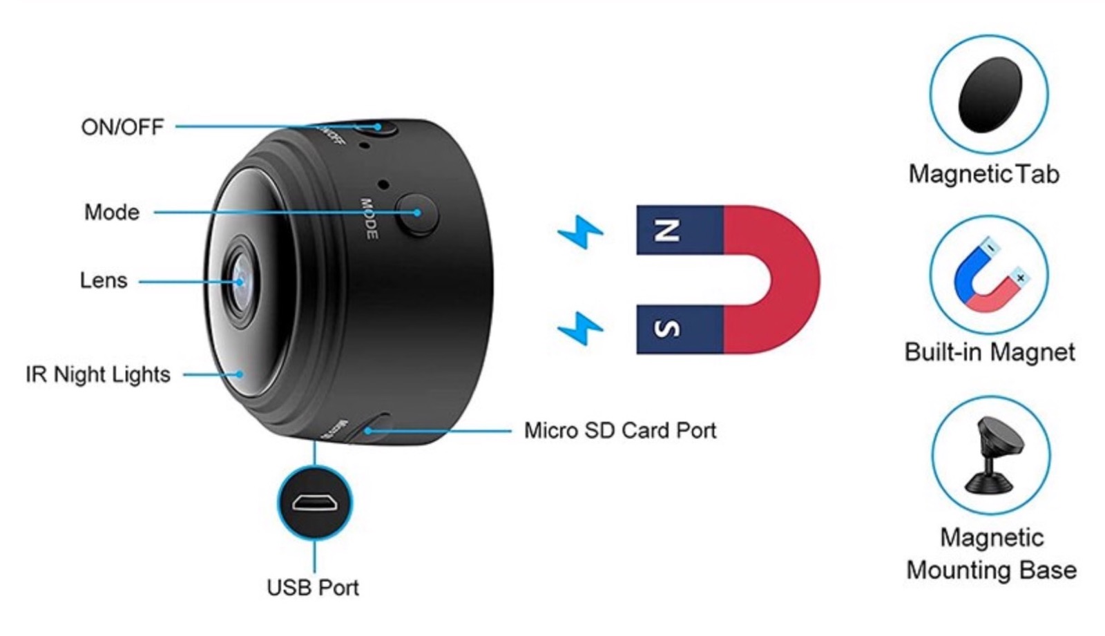 Il principale punto di forza è che è molto piccola: di forma circolare, ha uno spessore di 2,5 centimetri e un diametro di 4,3 centimetri, ed essendo tutta nera è facile da camuffare dietro un quadro, tra le foglie di una pianta in vaso o direttamente sul soffitto.