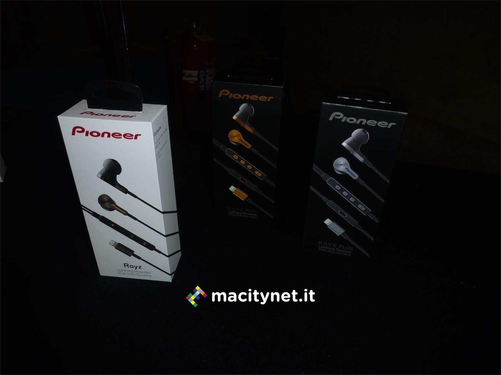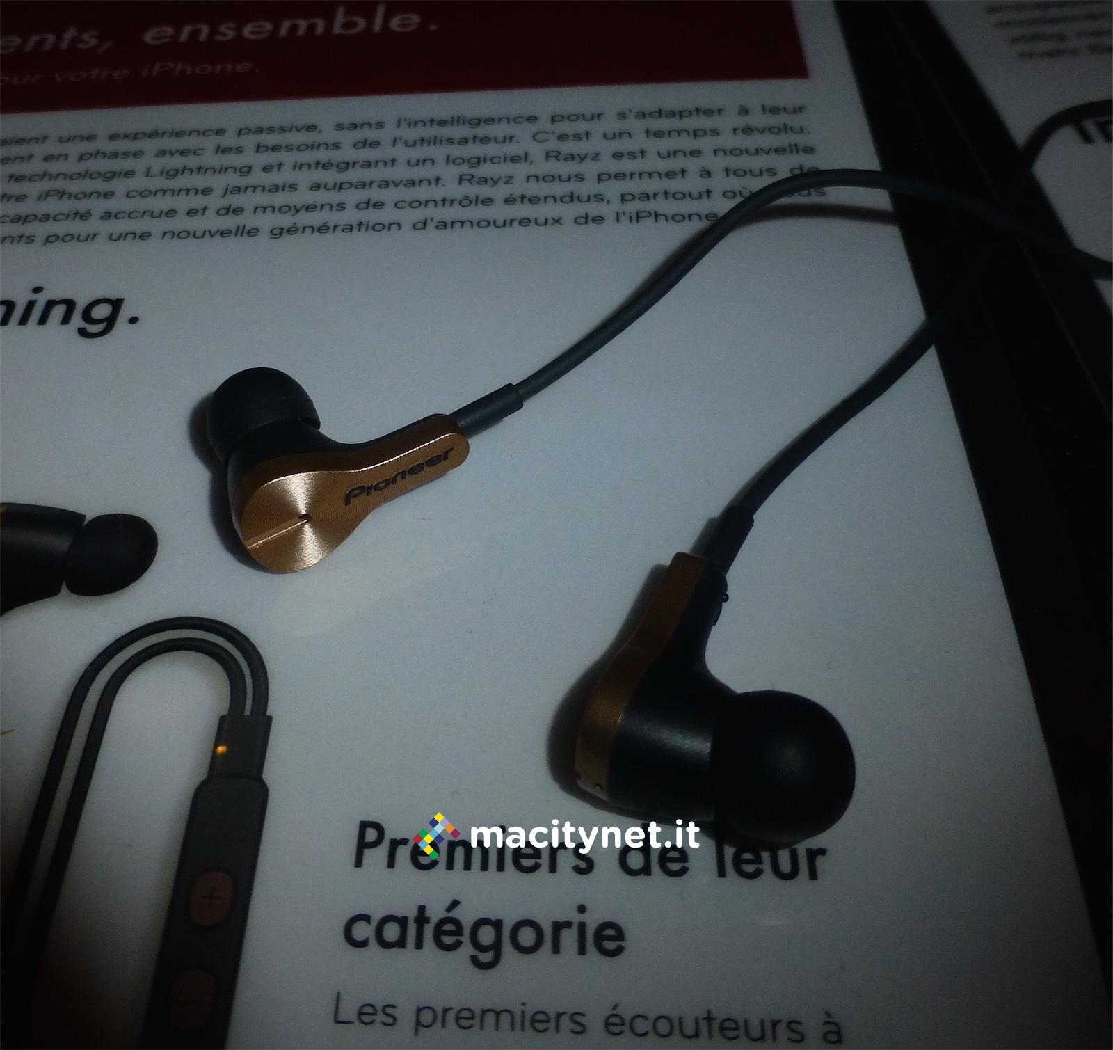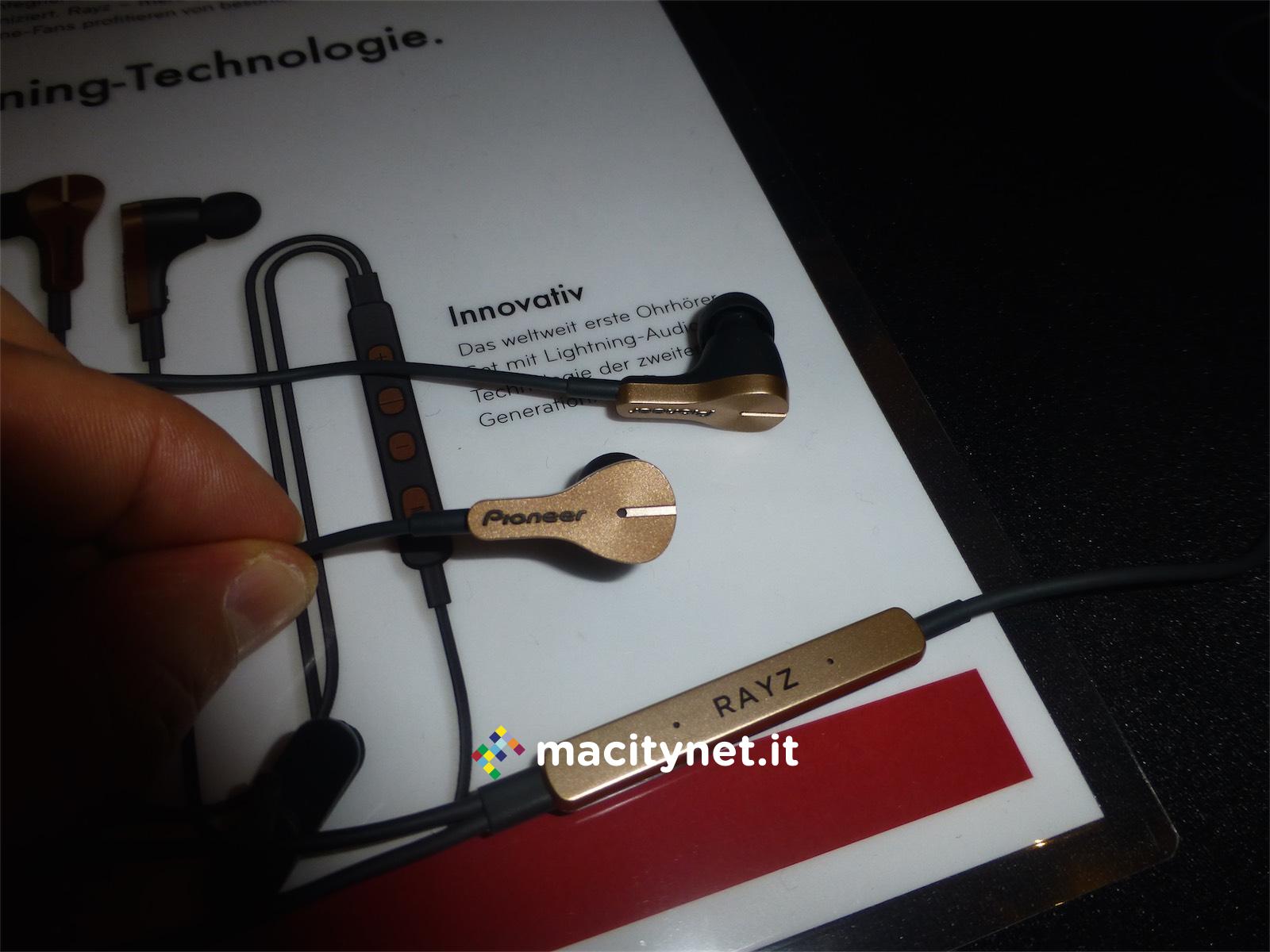Considerando l’impressionante elenco di tecnologie e funzioni integrate, passa quasi in secondo piano che Pioneer Rayz sono i primi auricolari dotati di Lightning passante per ascoltare musica e allo stesso tempo ricaricare iPhone, questo nel modello Rayz Plus, come abbiamo già descritto più in dettaglio qui. Una bella sorpresa per gli utenti di iPhone e iPad (e non solo) che ormai davano per spacciati cuffie e auricolari con cavo. Il jack audio è morto su iPhone 7 ma il futuro a partire da Lightning Audio di seconda generazione promette e già offre meraviglie. In USA Rayz costano 100 dollari invece il modello con cavo Lightning passante per ricaricare iPhone costano 150 dolari.