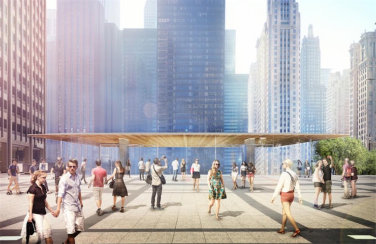 Il costo iniziale previsto di ben 62 milioni di dollari, il più alto mai speso per un Apple Store, già indicava che il progetto per il nuovo Apple Store di Chicago fosse speciale. Successivamente il budget è stato rivisto e dimezzato ma gli obiettivi di Cupertino rimangono alti: non sarà semplicemente un negozio ma diventerà un punto di ritrovo per gli abitanti della città e i turisti, anche per la sua posizione strategica con una piazza sovrastante e una imponente scalinata che scende dal livello della strada fino a toccare la riva del fiume Michigan. Un luogo panoramico in cui il nuovo Apple Store di Chicago si integrerà perfettamente grazie a ricercate soluzioni architettoniche e di ingegneria.
