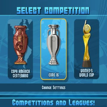 In Pixel Cup Soccer 16 non valgono le regole complesse che invece dominano i titoli su console. Per gestire completamente l’azione di gioco bastano uno stick virtuale sulla destra e due tasti azione sulla sinistra, che all’occorrenza permettono di calciare il pallone o di passare, ma anche di difendere quando è l’avversario ad avere il possesso di palla. L’azione di gioco scorre fluida e veloce, e la vena arcade la si nota anche nelle impostazioni, dove è possibile settare la velocità di gioco, per rendere le partite ancor più veloci, ma anche più lente nel caso in cui si desideri un calcio più ragionato.