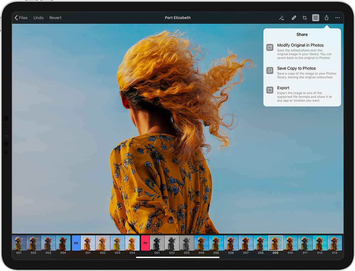 Pixelmator Photo, spiegano gli sviluppatori, offre ai fotografi tutti gli strumenti necessari per l’editing di foto su iPad, un insieme di strumenti non-distruttivi e di correzione di classe desktop (tipicamente disponibili solo su costose applicazioni per computer). I vari tool consentono di migliorare in vari modi le foto; è supportato il formato RAW ed è possibile sfruttare uno strumento denominato “Repair tool” per la rimozione di oggetti indesiderati, e vari preset per creare effetti ispirati a famose pellicole fotografiche di tipo analogico.