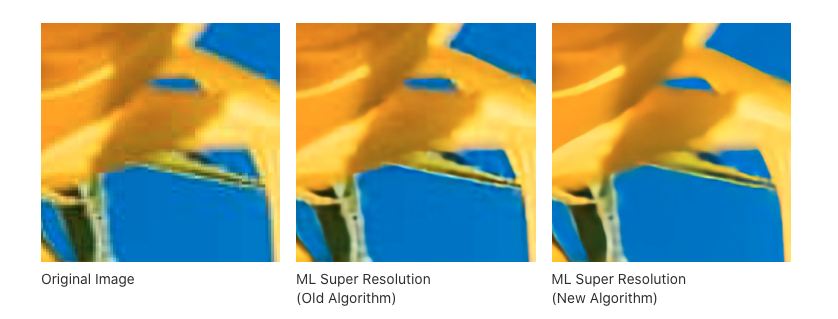 Tra le novità di questa release alcuni miglioramenti importanti nella “ML Super Resolution”, funzionalità che sfrutta il machine learning per aumentare la risoluzione delle immagini sfruttando tecniche di apprendimento automatico definite “all’avanguardia”. Altra novità riguarda “ML Denoise” funzione per l’eliminazione del “rumore” nelle immagini digitali e l’integrazione di due nuove azioni Automator collegate alle nuove funzioni.