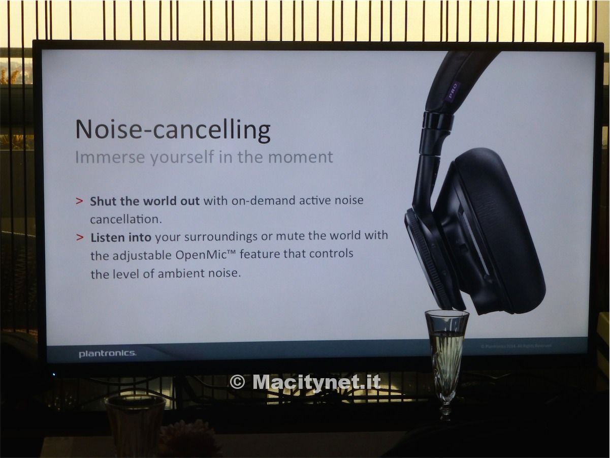 Le nuove Plantronics BackBeat Pro sono cuffie di dimensioni generose, con driver da 40mm ma soprattutto ben imbottite e curate: basta indossarle per avvertire un buon isolamento passivo dai rumori circostanti. Attivando poi la funzione di soppressione attiva del rumore sembra offrire i risultati migliori con rumori monotoni, come quelli dei treni, degli aerei e così via.