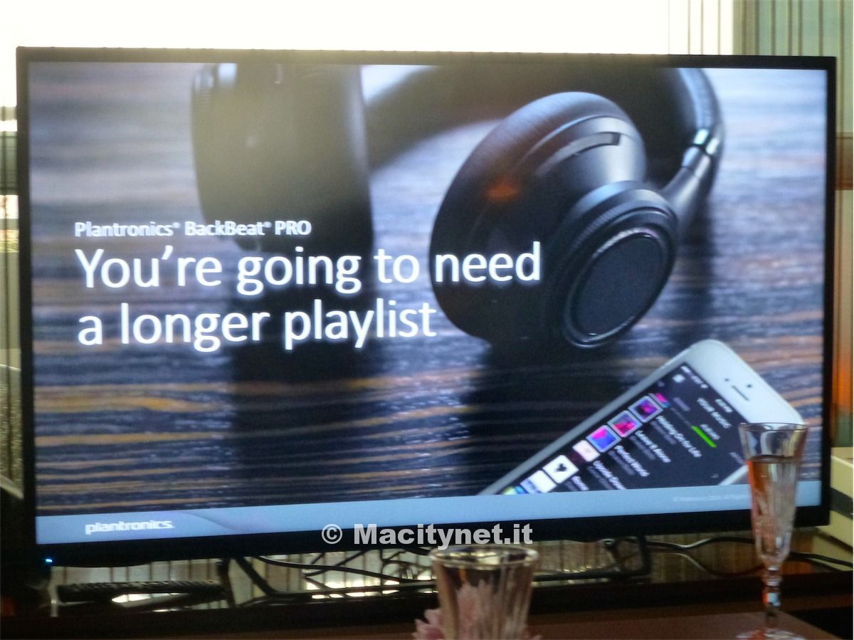 In questo articolo è possibile osservare le foto scattate durante l’evento durante il quale sono intervenuti Oliver Jungklaus, Senior Marketing Manager di Plantronics Germania e Stuart Bradshaw, responsabile consumer marketing EMEA. Delle specifiche di Plantronics BackBeat Pro abbiamo parlato in occasione del lancio in USA. Offrono 24 ore di autonomia per ascoltare musica in streaming e telefonate inoltre sono dotate di soppressione attiva del rumore. Si tratta di un dispositivo progettato per offrire autonomia completa dai cavi non solo per una giornata intera di lavoro, ma anche durante gli spostamenti e lunghi viaggi. Le prime impressioni raccolte dai test effettuati in pochi minuti nella Pan Am Suite sono decisamente positive.