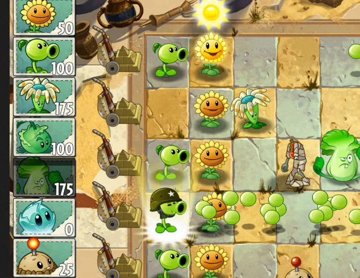 Per quanto riguarda invece le meccaniche di gioco, Plants vs Zombies 2 sembra restare fedele al primo capitolo, limitandosi a proporre una grafica più dettagliata e introducendo nuove tipologie di piante e nuovi tipi di zombi. Il giocatore dovrà ancora una volta piazzare all’interno della griglia le proprie piante, cercando di accumulare soli da spendere in nuove unità e difendendo la propria base da ondate di non-morti. Le novità interessanti sono infatti legate alle abilità delle piante inedite o agli attacchi speciali di nuovi nemici: un esempio è uno zombi pianista che permette ai nemici adiacenti di saltellare da una corsia all’altra, mentre una mummia egiziana è in grado di usare il suo scettro per rubare i soli prima che vengano raccolti dal giocatore.