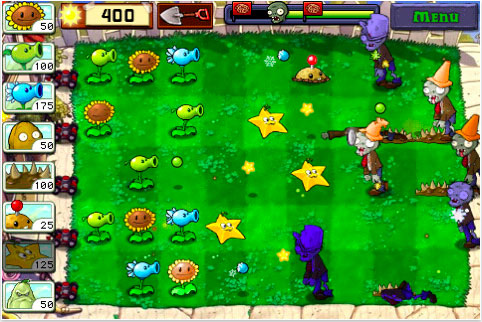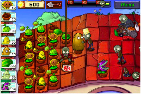 In Plants vs Zombies dobbiamo interrare strategicamente piante di diverso tipo in grado di rallentare e distruggere le progressive orde di zombi. Si tratta di una originale variazione del genere tower defense: le piante offrono diverse armi naturali contro i non morti, per esempio sparano ciliegie, piselli, noci e altri frutti e vegetali. Ognuna di queste armi non convenzionali è in grado di provocare il massimo danno solo su una determinata specie di zombi. Le animazioni e la grafica in stile cartoon ricordano i tratti semplificati ma anche irresistibili di famose serie TV. Il tutto è ovviamente condito da una gran varietà di schemi e situazioni di gioco, dove l’umorismo non manca mai. Macitynet ha già parlato di Plants vs Zombies in questo articolo.