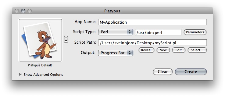 Platypus 4.2 è un tool open source per sviluppatori utilizzabile per la creazione di applicazioni per Mac OS X a partire da script interpretati quali script per la shell oppure programmi Perl e Python. Il sistema incorpora lo script in un’applicazione, un bundle con una struttura a directory con integrato il binario eseguibile che consente di eseguire lo script. Il sistema consente di condividere script e programmi con chi non ha familiarità con la linea di comando, non ha conoscenza delle API di Mac OS X e permette di creare applicazioni con pochi click. Si possono creare installer, routine di manutenzione, elementi di login, launcher, droplet, ecc. Sono supportati gli shell scripts, Perl, Python, PHP, Ruby, Expect, Tcl ed AppleScript. Il Security Framework di Apple permette l’esecuzione di script con i privilegi di root e il drag&drop dei file permette il passaggio di parametri (argomenti) agli script.