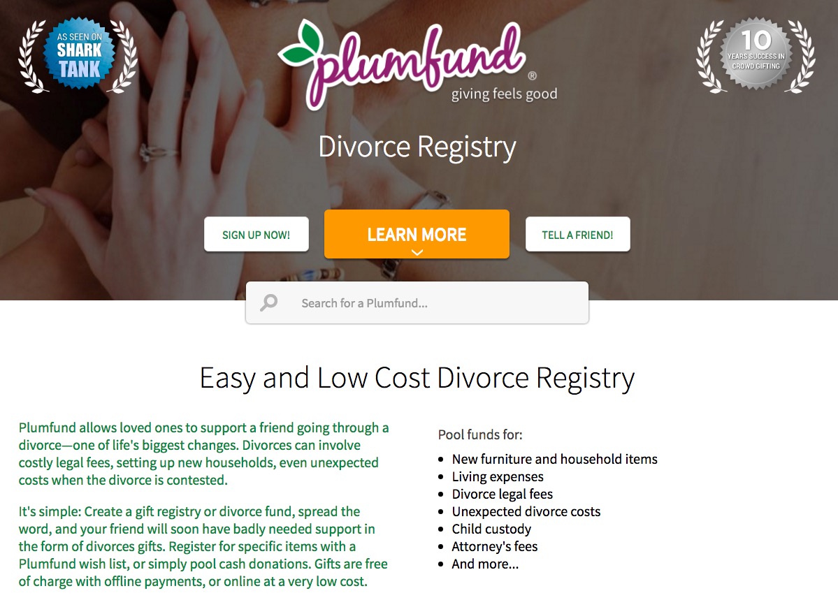 “Recentemente ho aggiunto il divorzio a Plumfund per via di un caro amico che è rimasto finanziariamente impoverito dopo aver attraversato un divorzio amaro e tirato per via di una lunga battaglia per la custodia dei figli – ha dichiarato Sara Margulis, co-fondatrice di Plumfund in un’email a Quartz commentando l’aggiunta della categoria –  E’ stato davvero stimolante vedere le persone più vicine al mio amico venire in suo aiuto”.