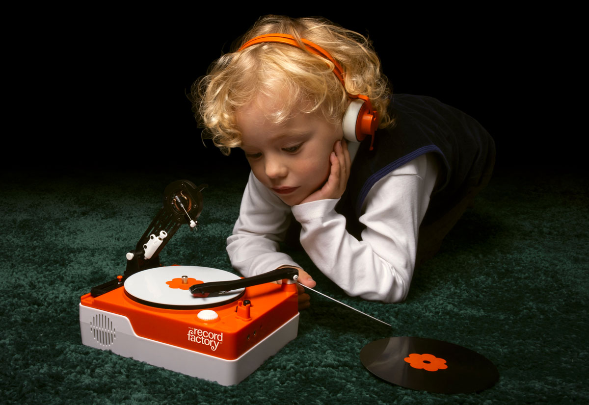 La svedese Teenage Engineering – azienda nota per vari gadget musicali (drum machine, campionatori, sintetizzatori, ecc.) – commercializza “PO-80 record factory”, un compatto e portatile dispositivo che permette di registrare da soli dischi di vinile da 5″ e riprodurli. Il dispositivo è proposto in un kit che è possibile costruire da soli: è uno scatolotto bianco e arancio dall’aspetto vintage con il quale registrare 33 giri (4 minuti per lato) e 45 giri (3 minuti per lato) sfruttando il jack in ingresso (utile per collegare strumenti musicali, microfoni o apparecchiature audio) e avviando la registrazione. Si può anche collegare una cassa esterna al jack da 3,5mm.