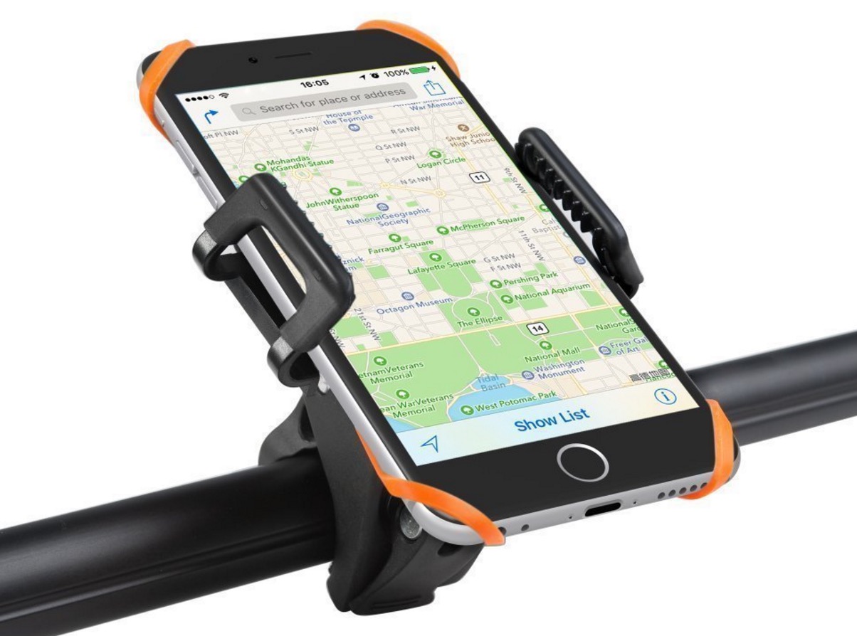 Questo accessorio, recensito da Macitynet, è l’equivalente dei supporti da auto, ma con tutte le differenze necessarie per essere adattato ad una bicicletta. In particolare ha una ganascia che si stringe intorno al manubrio e una piattaforma che tiene fermo il telefono. A fini di maggior sicurezza è anche presente un eleastico che consente piccoli movimenti che derivano dalle vibrazioni del manubrio che derivano da un fondo sconnesso, ma non permette che il cellulare si sganci.