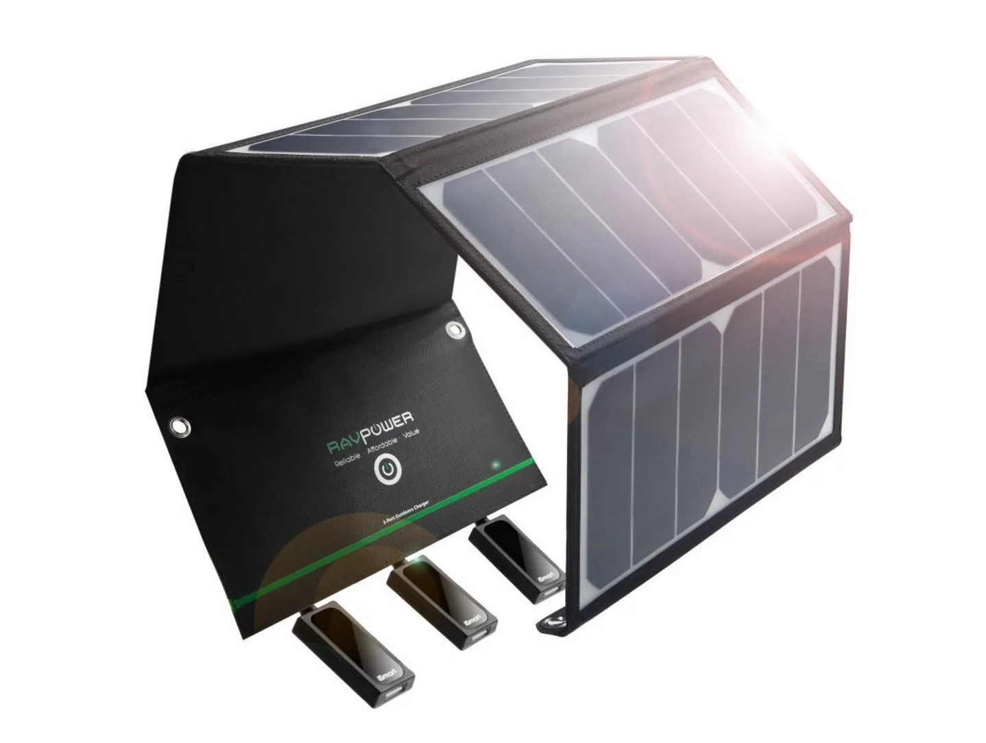 Con il sistema a pannelli solari di RavPower potete ricaricare fino a tre dispositivi contemporaneamente e grazie ad un nostro codice sconto, per qualche giorno lo comprate spendendo meno: solo 52,49 euro spedizione compresa.