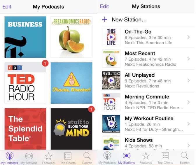 L’app Podcast, lo ricordiamo, permette di scoprire, riprodurre e iscriversi ai podcast preferiti. È possibile sfoglia migliaia di podcast audio e video gratuiti in “In primo piano” o guardare le Classifiche per scoprire quelli più in voga. I podcast preferiti si possono aggiungere alle stazioni personali e si aggiornano automaticamente quando diventa disponibile una nuova puntata. È possibile sincronizzare le playlist da iTunes o creare una playlist On-The-Go per riprodurre solo le puntate desiderate. iCloud mantiene sincronizzate le iscrizioni, stazioni e posizioni di riproduzione tra tutti i dispositivi, computer e Apple TV.