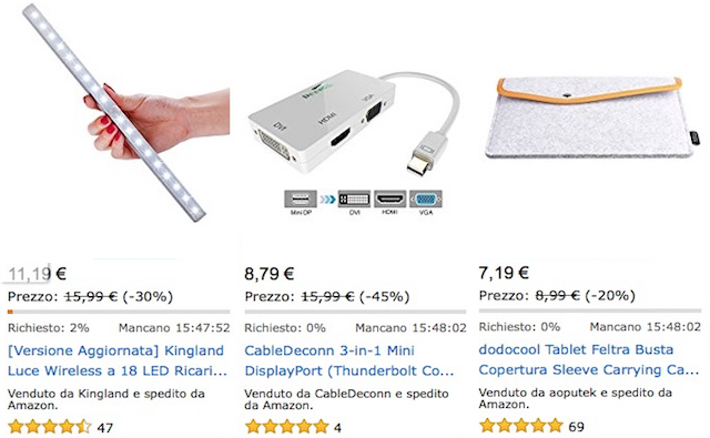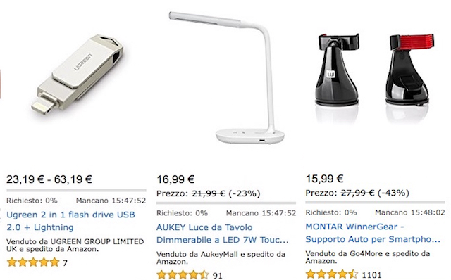 N.B. Le offerte Flash sono a tempo limitato e in quantità limitate. Quindi anche se avete la possibilità di comprare fino a mezzanotte, non è detto che i prodotti siano realmente disponibili fino a quell’ora perché le scorte potrebbero essere terminate