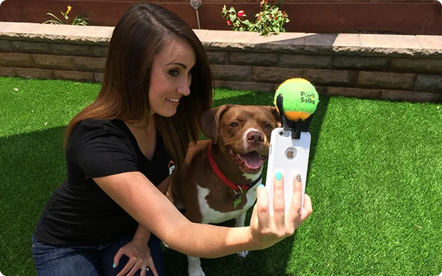 L’idea è semplice ma geniale: il Pooch Selfie non è altro che un supporto da fissare al vostro tablet o al vostro smartphone in corrispondenza della fotocamera, cui attaccare una simpatica pallina colorata.