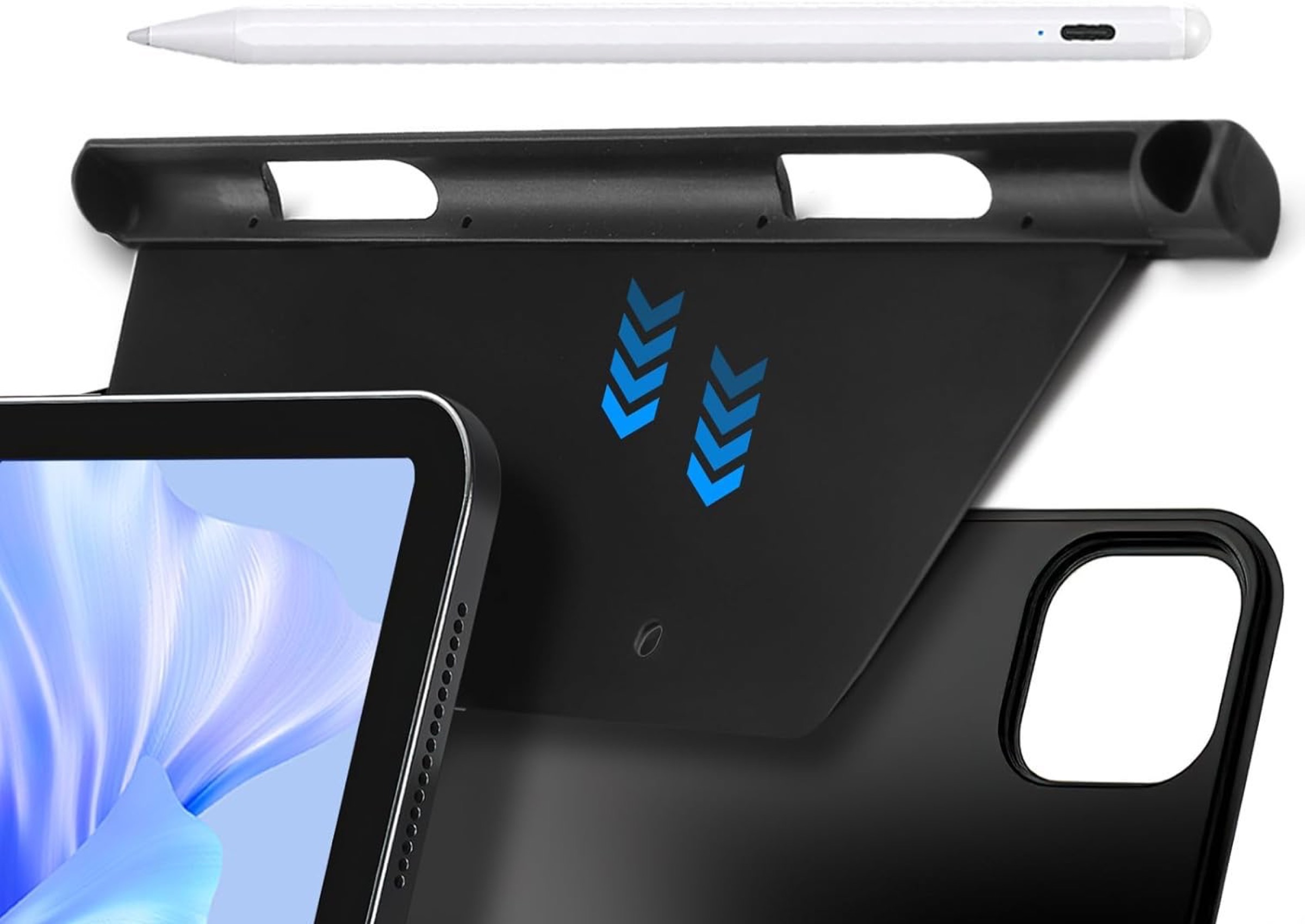 È realizzato in metallo e TPU, quindi è resistente ma al contempo anche leggero. L’alloggiamento come dicevamo è a misura di Apple Pencil 2 ed è accompagnato da un’aletta di circa 19 x 7 centimetri che si interpone tra iPad e una comune custodia.