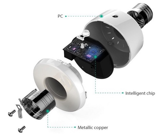 Per l’installazione fisica di Koogeek Smart Socket è ovviamente necessario svitare la lampada e inserire il portalampada passante al suo posto e infine re-inserire la lampada che è la classica E27 o Edison a passo largo.