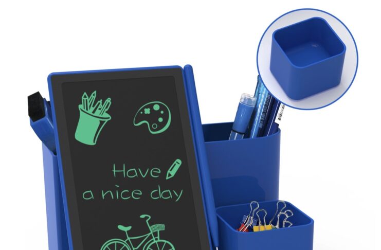 Questo piccolo set organizer mette a disposizione dei porta penne, per mettere in ordine la scrivania, ma è la presenza della tavoletta grafica da 6,5 pollici che incrementa il valore di questo set.  Grazie alla penna integrata, infatti, è possibile prendere punti e cancellare ripetutamente, senza dover sprecare fogli di carta.