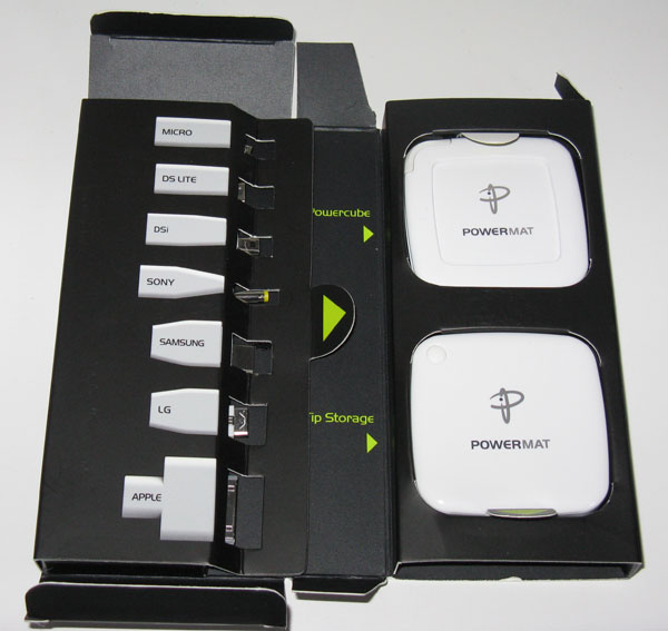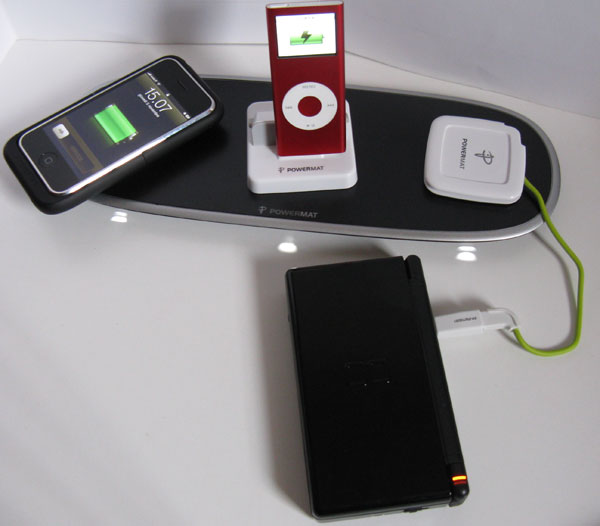 Così con la dotazione di serie del Powermat è possibile caricare iPhone, touch e iPod tramite l’adattatore Dock, telefoni LG e Samsung, Sony, la console portatile DS e anche la versione DSi, infine tutti i tascabili che offrono una porta di ricarica micro USB. Per sfruttare appieno i tre vani di ricarica offerti dalla base Powermat e beneficiare della ricarica a induzione senza fili è opportuno acquistare uno o più accessori opzionali.