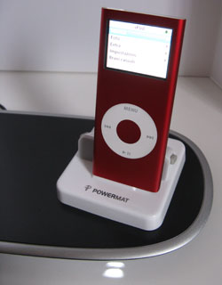 Impossibile non rimanere affascinati dal funzionamento di Powermat: mentre avviciniamo la base per iPod o un altro dispositivo munito di ricevitore Powermat la nostra mano viene guidata nella corretta posizione grazie all’attrazione esercitata dai magneti. Una volta che le superfici della base e del ricevitore entrano in contatto Powermat emette un piacevole suono di conferma e allo stesso tempo un led nascosto nella parte frontale si accende e illumina una piccola porzione di spazio, proprio di fronte a noi. Powermat ricarica le batterie dei nostri dispositivi tascabili preferiti sfruttando l’induzione magnetica: non occorre più collegare e scollegare fili e utilizzare diversi alimentatori. Grazie a un sistema intelligente di comunicazione tra la base Powermat e il ricevitore la ricarica viene sospesa quando la batteria è carica, riducendo così i consumi.