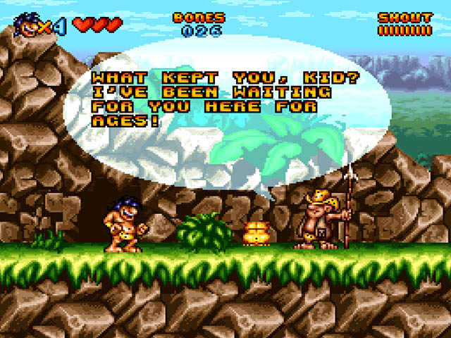 Il protagonista di Prehistorik Man è Sam, un simpatico cavernicolo dai capelli lunghi e il fare un po’ scimmiesco. Quando dei voraci dinosauri rubano tutte le riserve di cibo della sua tribù, Sam verrà mandato dal saggio capo villaggio a recuperarle. Per farlo dovrà attraversare foreste in fiamme, una jungla fittissima, inquietanti villaggi su palafitte e distese ghiacciate saltando – come è d’obbligo nei giochi di questo genere – da una piattaforma all’altra, con una buona libertà di movimento: non solo Sam potrà saltare, ma anche arrampicarvi e farvi sostenere nel volo da correnti d’aria. Inoltre avrete a disposizione anche una serie di oggetti da utilizzare, come ad esempio una specie di monociclo senza pedali, con la ruota fatta di roccia, un deltaplano, una molla su cui rimbalzare. Divertente, poi la trovata per la mossa speciale: un urlo terribile con il quale Sam può stendere tutti gli avversari sullo schermo e per fare il quale dovrete interagire col microfono.
