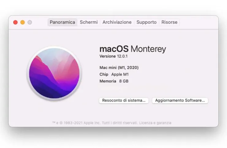 Apple indica un quantitativo minimo di 4GB di memoria RAM ma Monterey funziona meglio su macchine con un minimo di 8GB. Il nostro consiglio – se la vostra macchina lo consente – è di portare la RAM ad almeno 8 o anche pià GB: ne trarrà beneficio il sistema e le varie applicazion in generale.