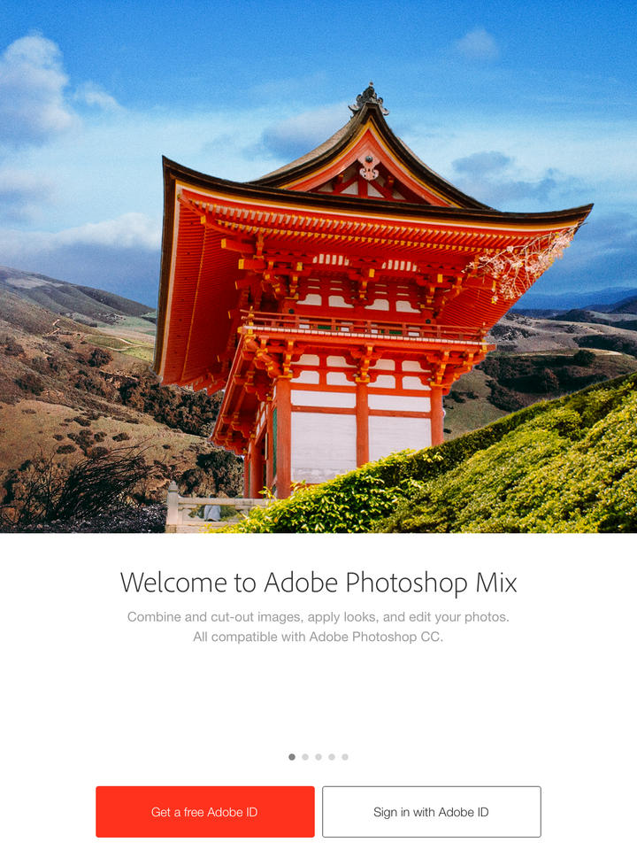 Photoshop Mix offre ritocchi fotografici non distruttivi tra cui Upright, Content Aware Fill e Camera Shake Reduction oltre a possibilità di creare selezioni, ritagliare e mixare le immagini.