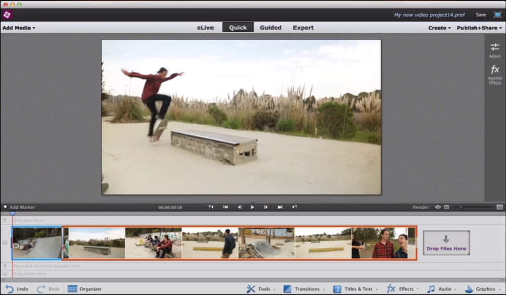 Con gli strumenti Video in Titles è possibile aggiungere titolazioni in stile cinematografico ed applicare dissolvenze e i più diffusi effetti del cinema con gli strumenti Effects Masking. Di particolare interesse sempre in Adobe Premiere Elements 13 è la nuova funzione Shake Stabilizer migliorata che permette di stabilizzare i video registrati con smartphone e action camera.