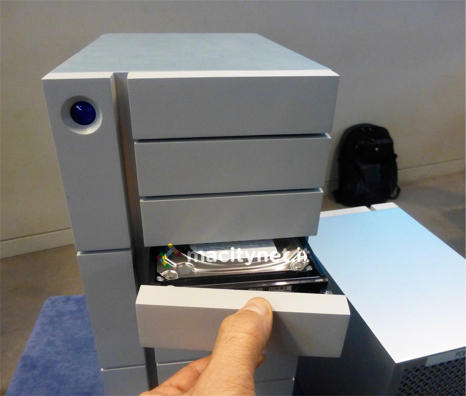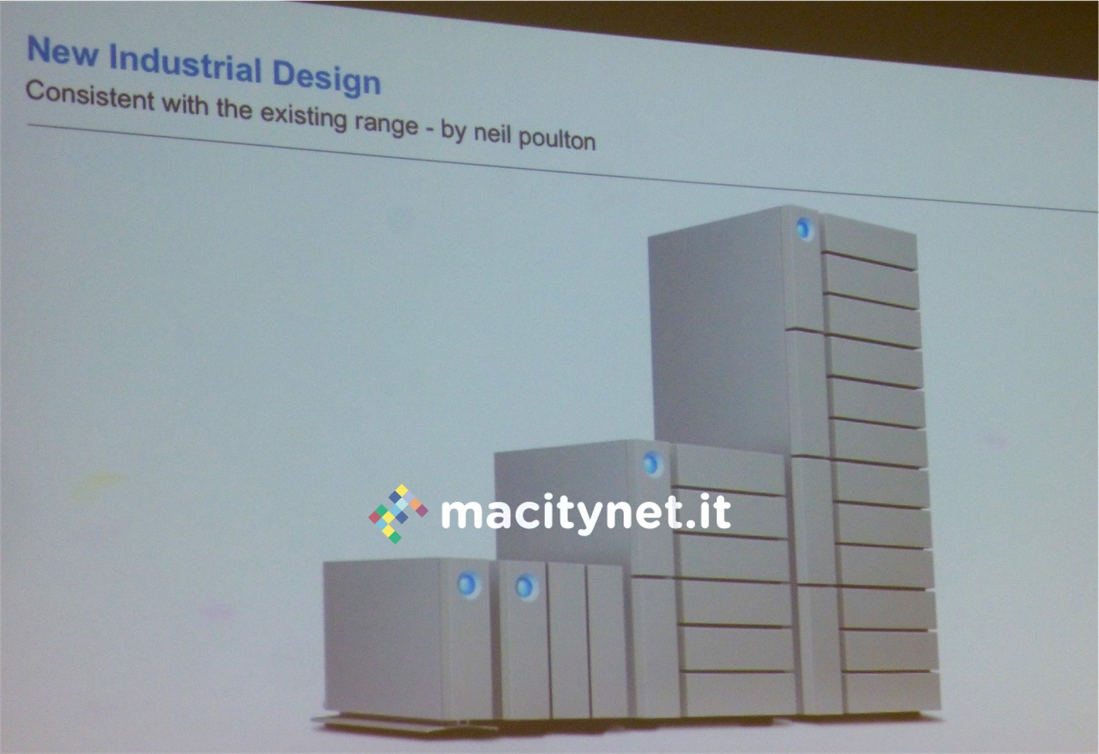 La parte frontale è animata da suddivisioni orizzontali che sembrano un tutt’uno con lo chassis, ma che in realtà costituiscono i cassetti in cui sono ospitati i dischi fissi, tutti estraibili a caldo. Una riuscita fusione di estetica e funzionalità firmata da Neil Poulton, designer industriale di fama mondiale che vanta una lunga collaborazione con il costruttore: Macitynet intervistò Neil Poulton nel 2009 a Milano in occasione del lancio di diverse unità LaCie da lui disegnate.