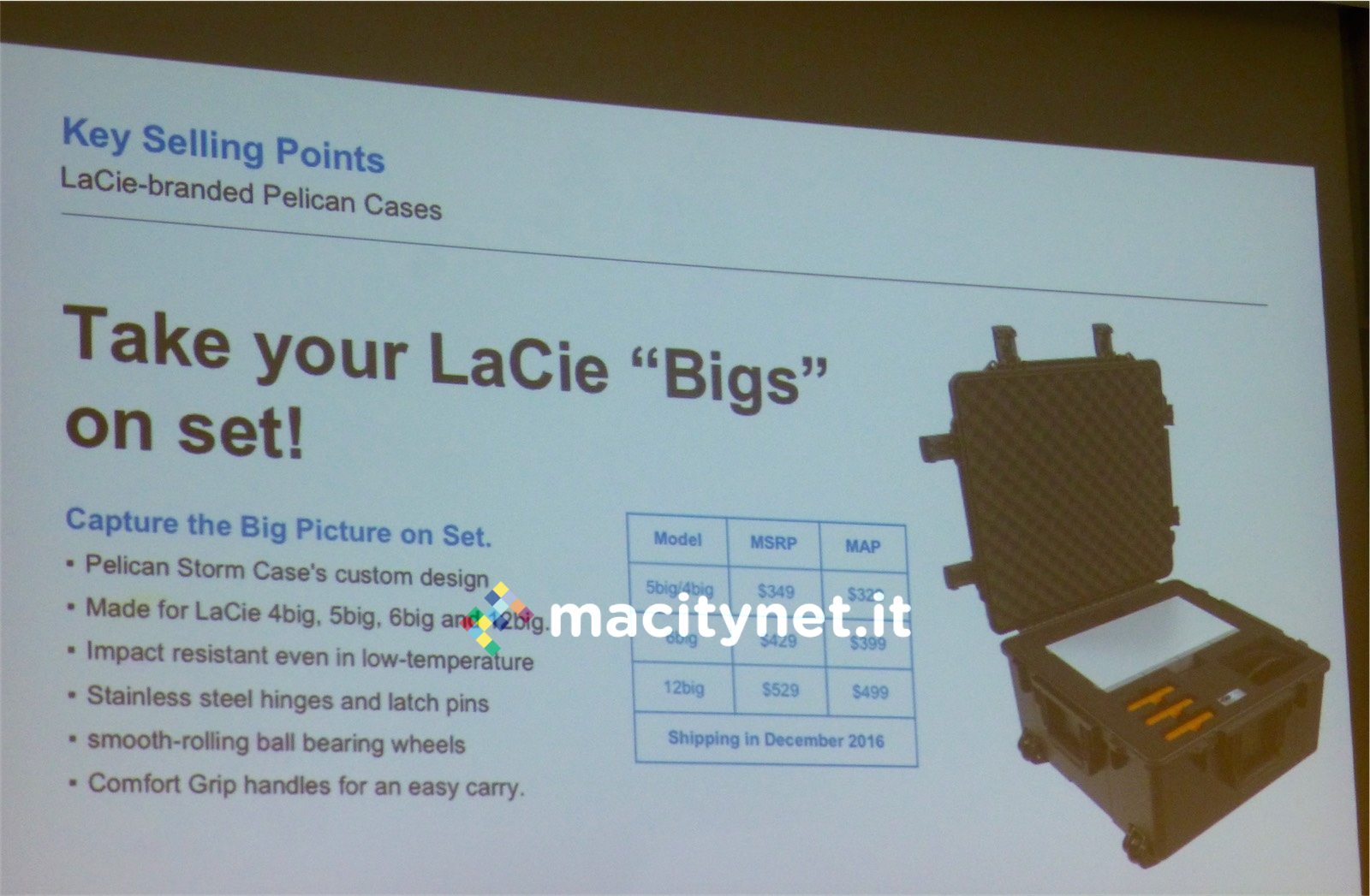 Dell’arrivo nel nostro Paese ha parlato Egle Cattaneo, Sales Manager Italia. I nuovi LaCie 12big e LaCie 6big saranno disponibili da dicembre con garanzia completa di 5 anni che include non solo i dischi fissi ma anche l’hardware. Saranno proposti già completi di dischi fissi Seagate di classe enterprise, non è invece prevista la commercializzazione come unità vuote popolabili con dischi dell’utente. LaCie 12big sarà disponibile con capacità da 48 TB, 96 TB e 120 TB a partire da 6.799,00 euro IVA inclusa, mentre LaCie 6big con capacità di 24 TB, 36 TB, 48 TB e 60 TB a partire da 3.199,00 euro IVA inclusa. Per ulteriori informazioni è possibile consultare questa pagina del sito del costruttore.