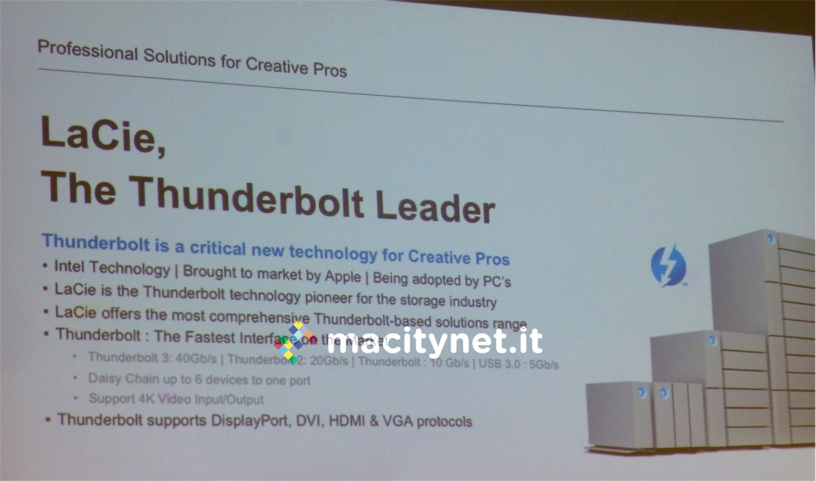 Ma oltre al design c’è molta sostanza: con 12 e 6 slot per altrettanti dischi, il tutto abbinato al velocissimo Thunderbolt 3, queste unità rappresentano il top della proposta LaCie desktop per i professionisti e gli utenti super esigenti, come ha illustrato nel suo intervento di apertura Jerome Keller, Southern Europe Sales Director di LaCie. «Nel 2012 Seagate ha comprato LaCie per essere più presente in questo settore e anche per lo stretto legame con il mondo Apple. Di fatto LaCie rappresenta il marchio premium del gruppo Seagate».