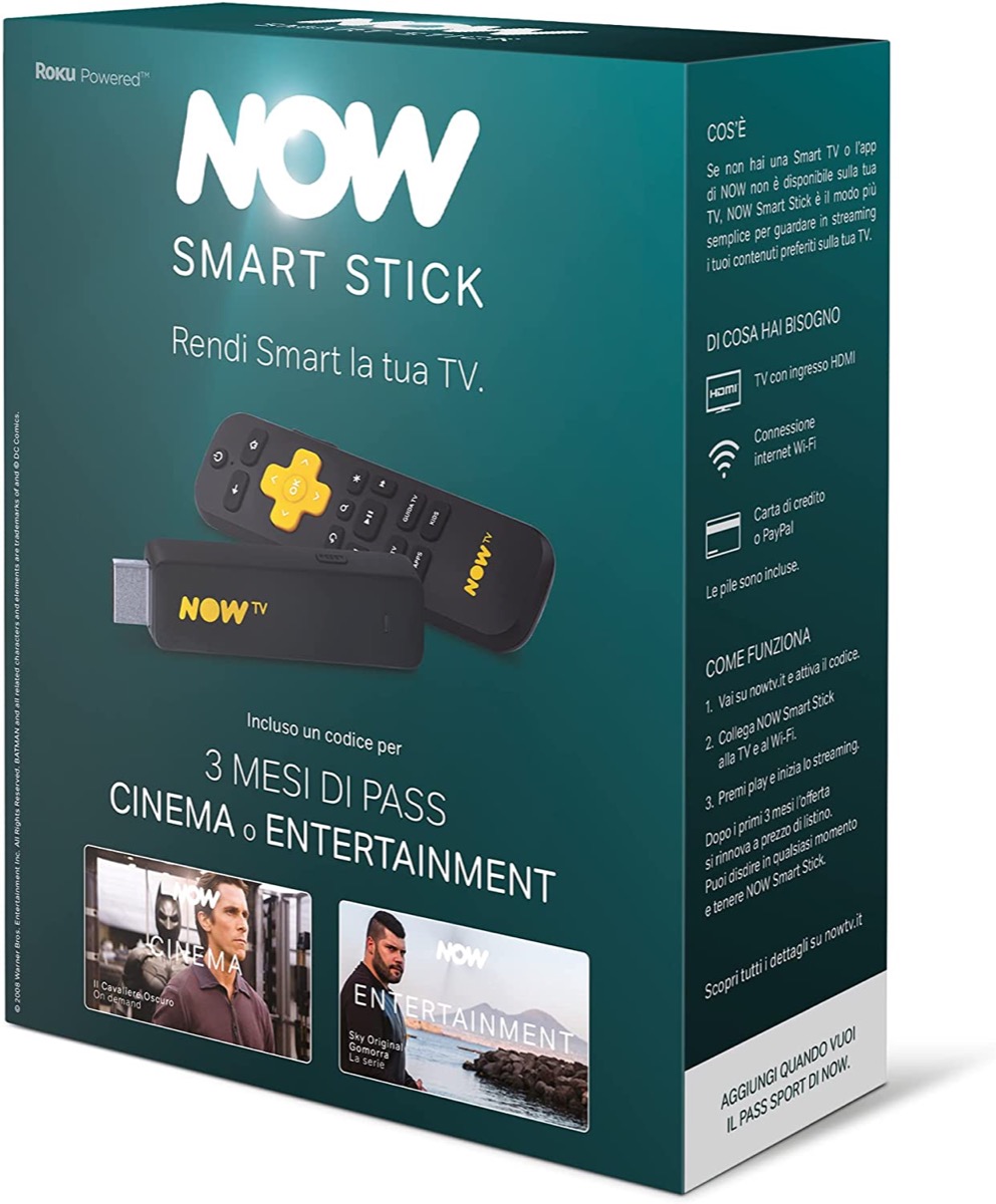 Su Amazon potete acquistare la NOW Smart Stick a 19,90 euro, con tre mesi di cinema o intrattenimento Sky inclusi nel prezzo. Non sono necessari abbonamenti, e potete disdire quando volete. A questo prezzo è praticamente un acquisto obbligato.