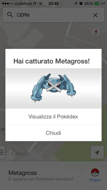 Aggiornando e aprendo l’applicazione su iOS o Android sarà infatti disponibile, toccando la lente, una opzione “Avvia ricerca”; selezionandola saremo portati al laboratorio del Cern di Ginevra dove potremo catturare un primo Pokemon. Poi dovremo esplorare i dintorni per trovare tutti gli altri e diventare Pokemon Master, figura che – molto probabilmente approvata direttamente da Nintendo, vista la paternità del marchio Pokemon – avrebbe lo scopo di girovagare per il globo e catturare i principali e più rari Pokemon disponibili lavorando per Google.
