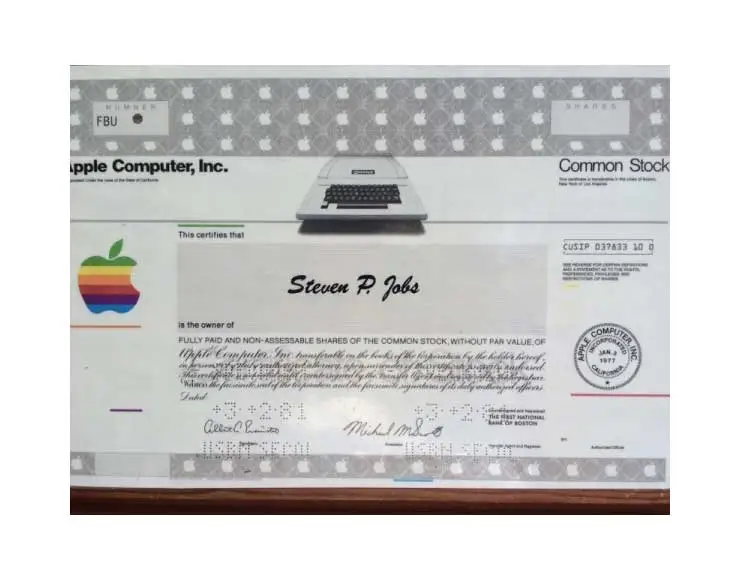 Il primo certificato azionario di Apple appartenuto a Steve Jobs è in vendita per 195.000$. Dopo che l’azienda fu quotata in borsa nel 1980, Jobs appese il titolo su una parete del suo ufficio, dove rimase fino al 1985, quando fu cacciato dall’azienda, estromesso per divergenze con l’allora CEO John Sculley.